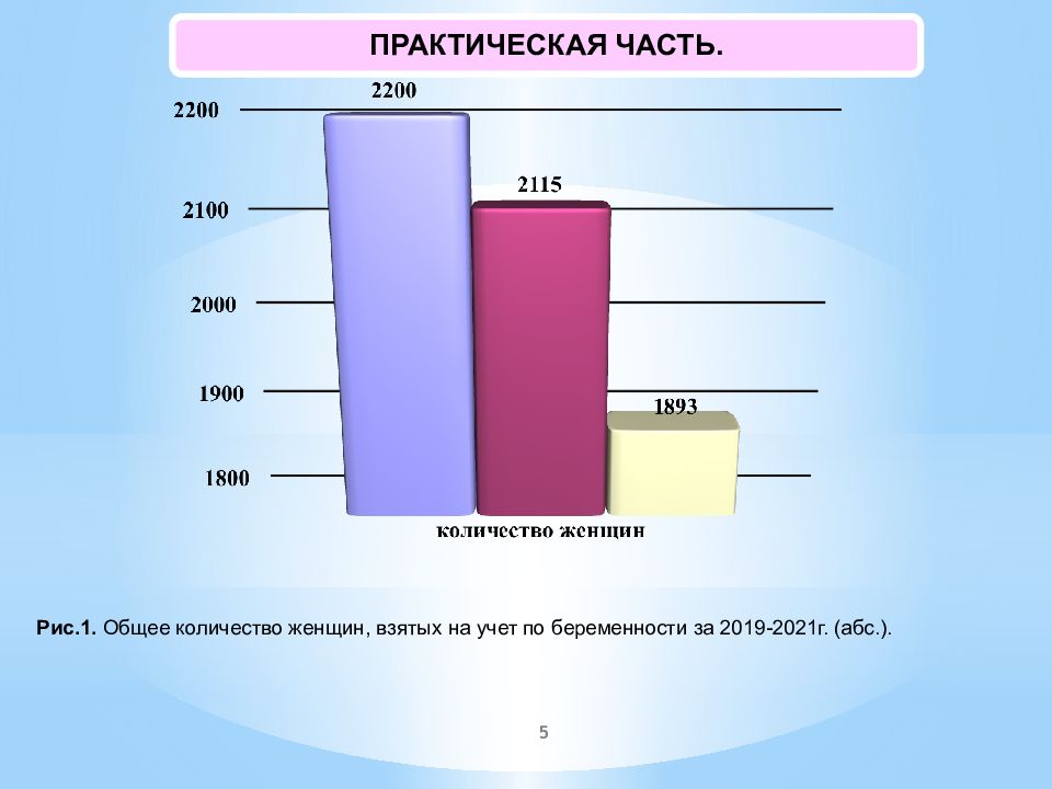5 ПРАКТИЧЕСКАЯ ЧАСТЬ. Рис.1. Общее количество женщин, взятых на учет по беременности за 2019-2021г. ( абс.).
