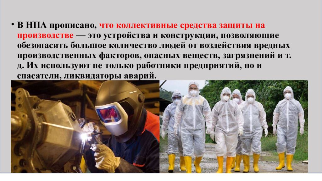 Последний слайд презентации: Средства индивидуальной и коллективной защиты от вредных и опасных