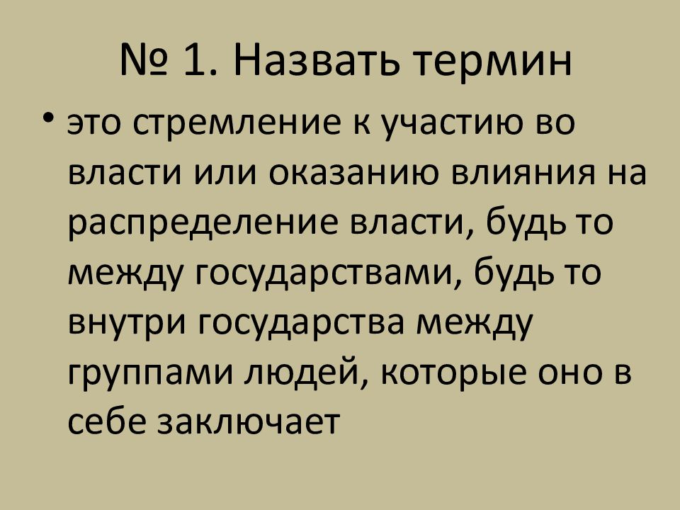 это стремление к участию во власти или оказанию влияния на распределение власти, будь то между государствами, будь то внутри государства между группами людей, которые оно в себе заключает