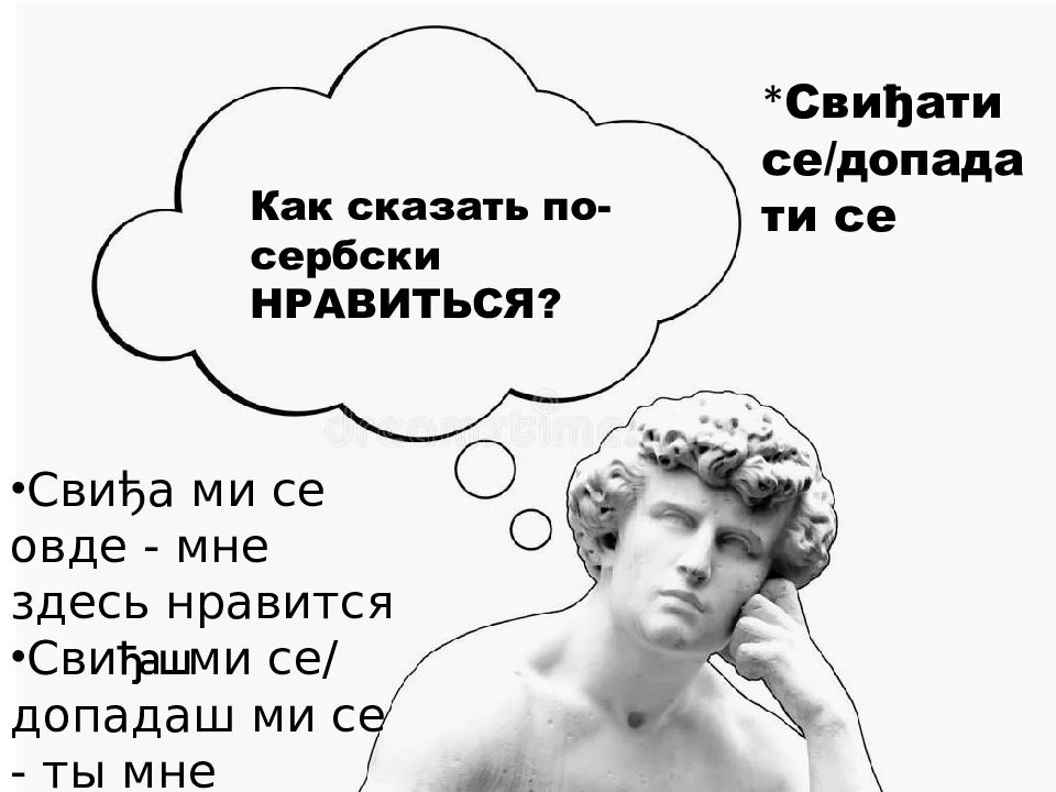 Как сказать по-сербски НРАВИТЬСЯ? * Свиђати се/ допадати се С виђа ми се овде - мне здесь нравится Сви ђаш ми се / допадаш ми се - ты мне нравишься