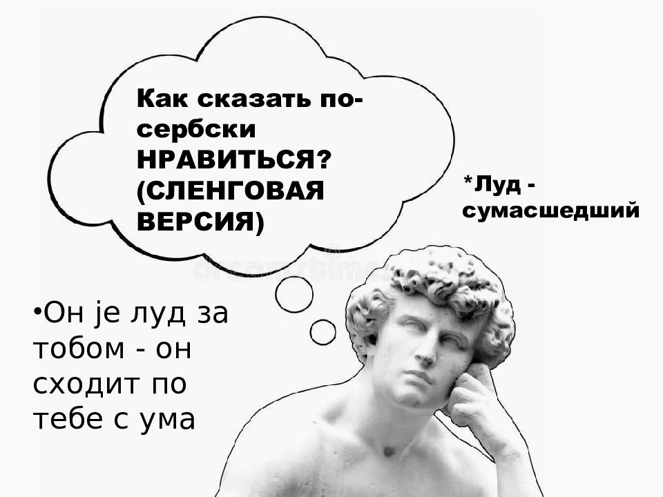 Как сказать по-сербски НРАВИТЬСЯ? (СЛЕНГОВАЯ ВЕРСИЯ) *Луд - сумасшедший Он је луд за тобом - он сходит по тебе с ума