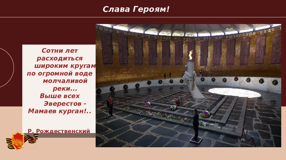 2022 Слава Героям! Сотни лет расходиться широким кругам по огромной воде молчаливой реки... Выше всех Эверестов - Мамаев курган!.. Р. Рождественский