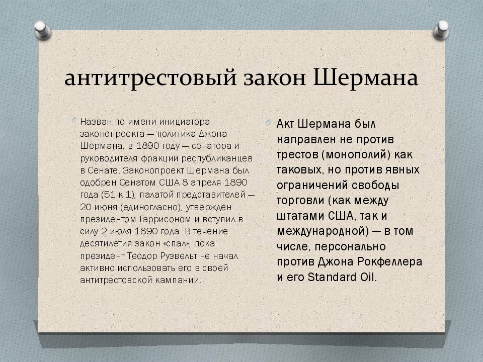 Слайд 5: антитрестовый закон Шермана