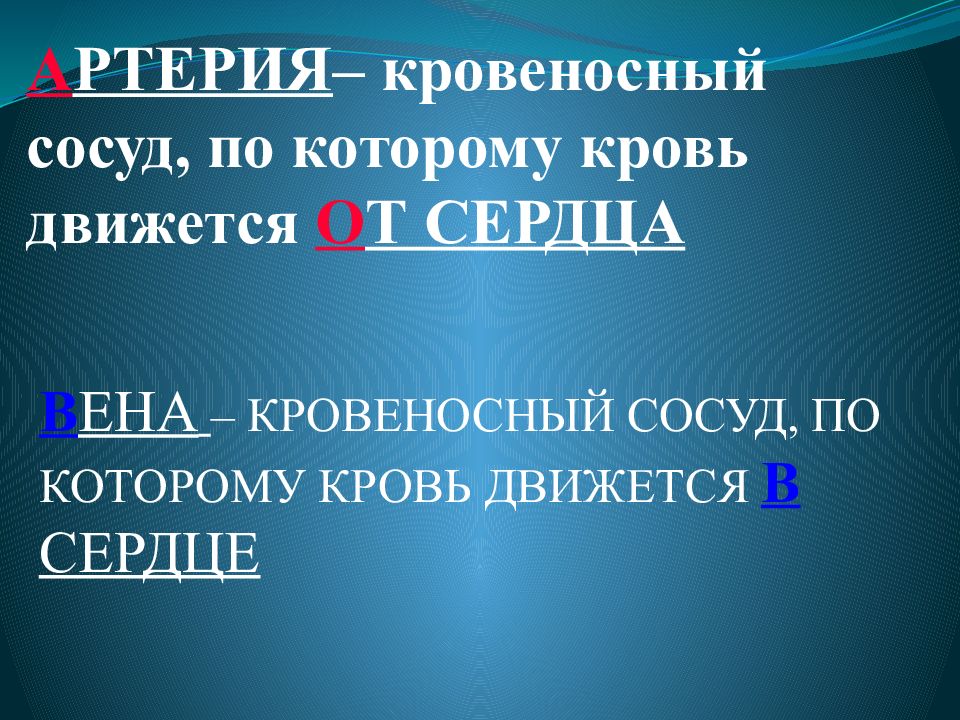 Слайд 12: А РТЕРИЯ – кровеносный сосуд, по которому кровь движется О Т СЕРДЦА