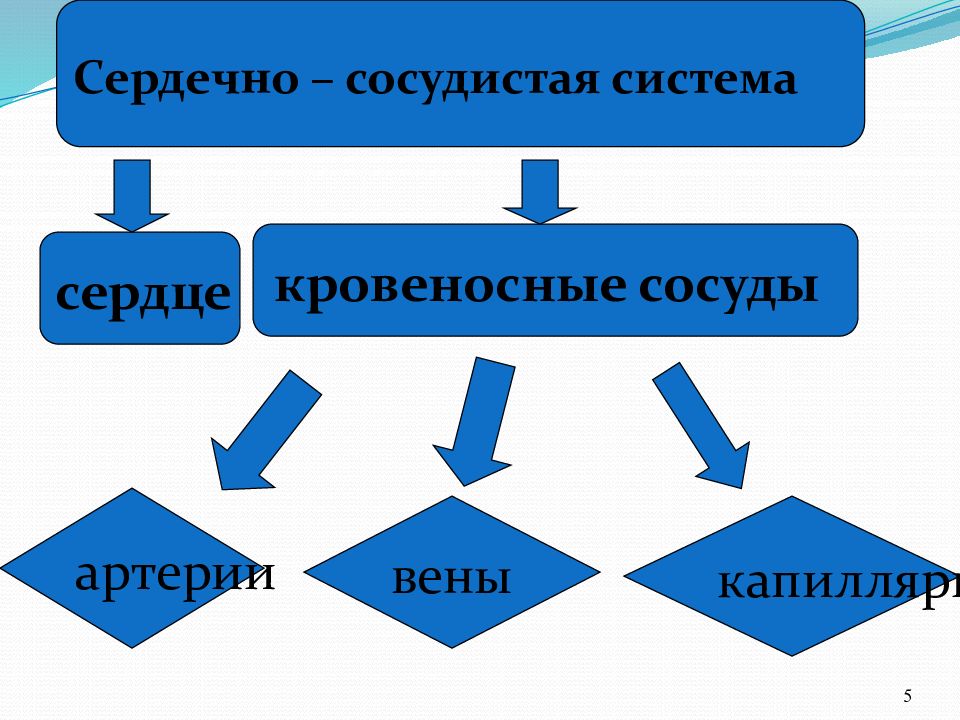 5 сердце кровеносные сосуды Сердечно – сосудистая система артерии вены капилляры