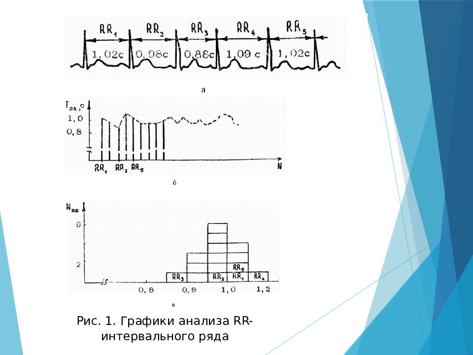 является одним из наиболее показательных методов статистической оценки сердечного ритма (СР). КИГ использует графическое представление данных об измерениях СР при помощи регистрации последовательных кардиоинтервалов (прибор кардиограф). Они измеряются по длительности RR – интервалов электрокардиограммы (ЭКГ) в секундах или миллисекундах (1 с=1000 мс ).