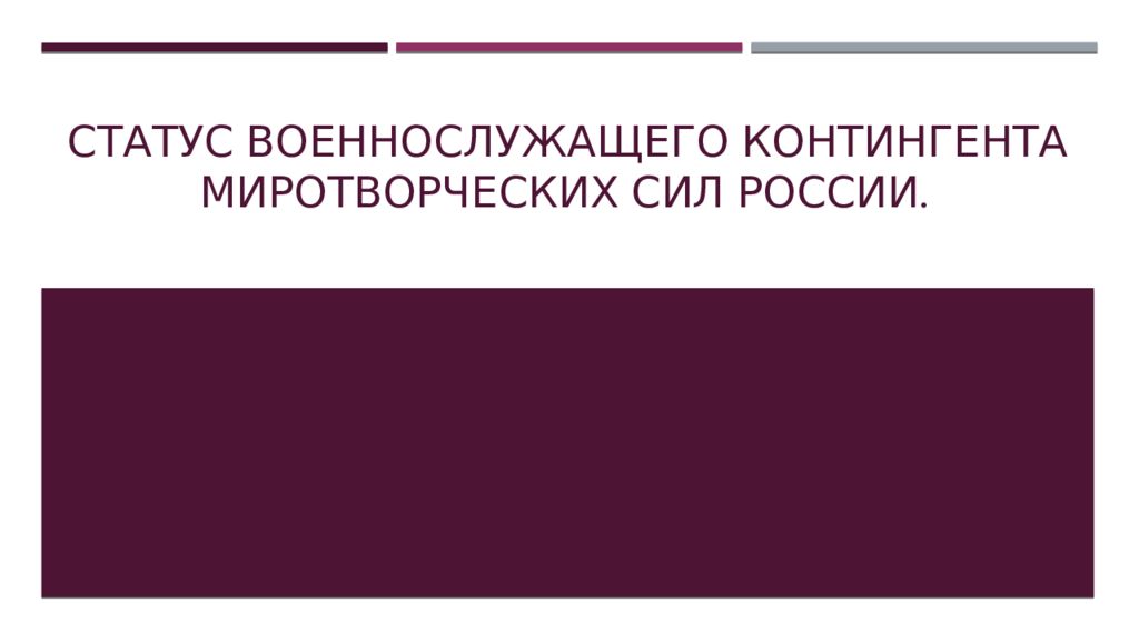 Первый слайд презентации: Статус военнослужащего контингента миротворческих сил России