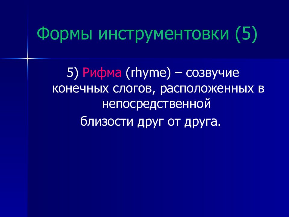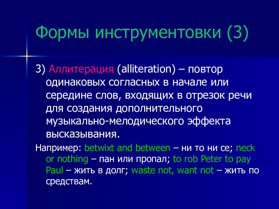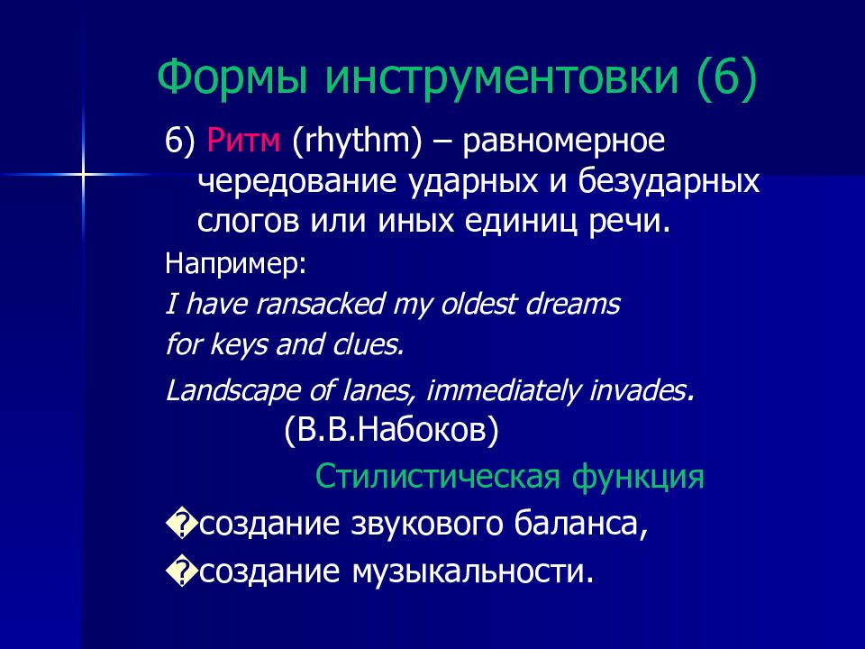 Последний слайд презентации: СТИЛИСТИКА АНГЛИЙСКОГО ЯЗЫКА: Формы инструментовки (6)