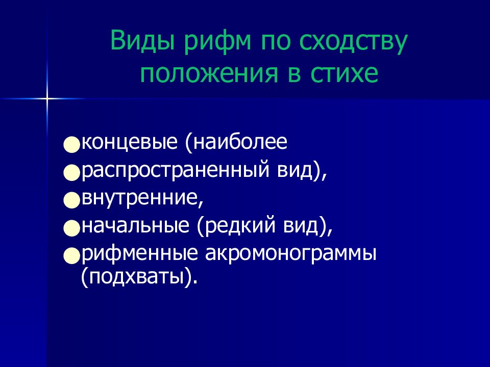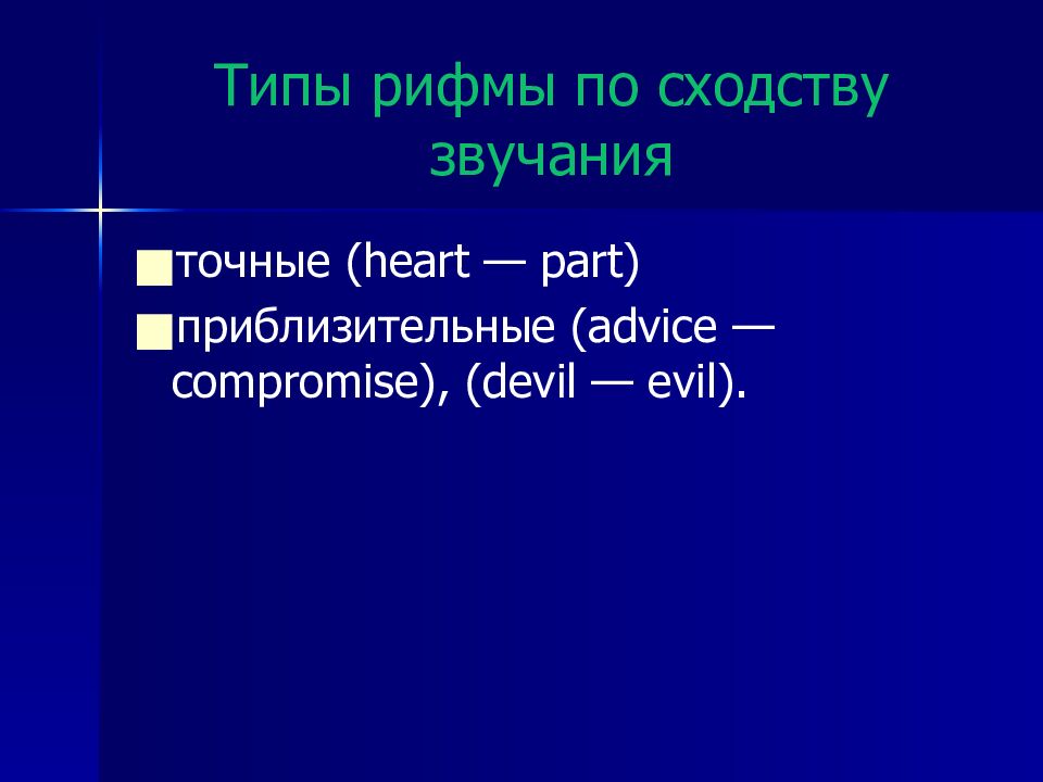 Слайд 20: Типы рифмы по числу совпадающих звуков