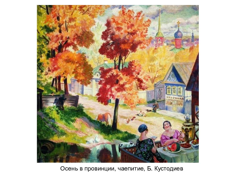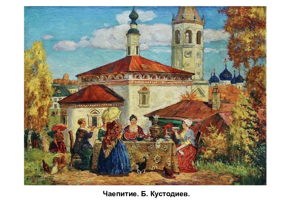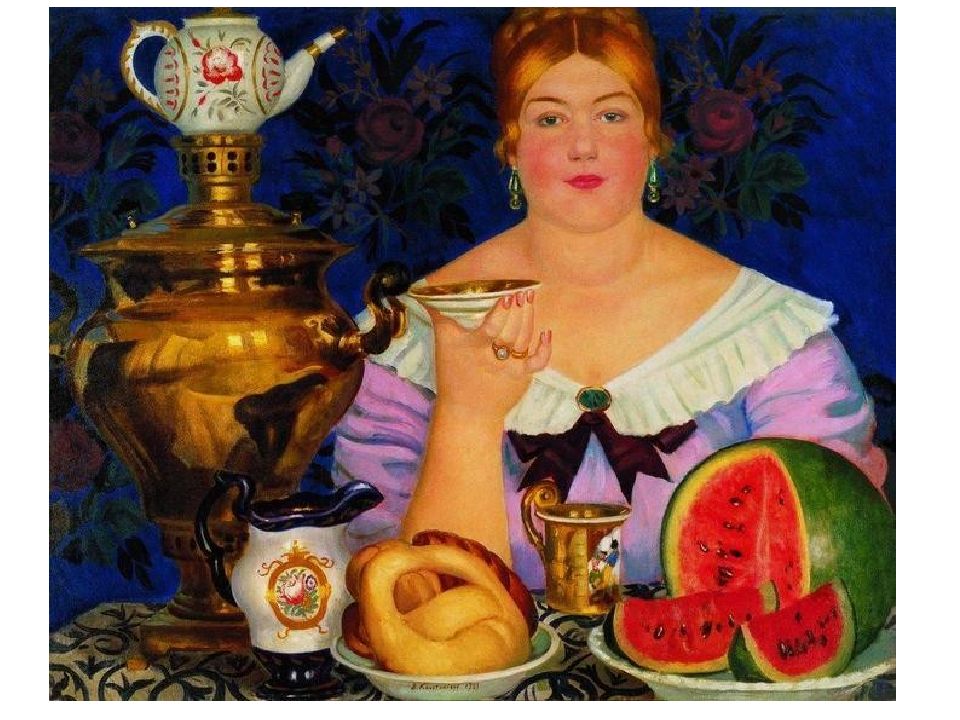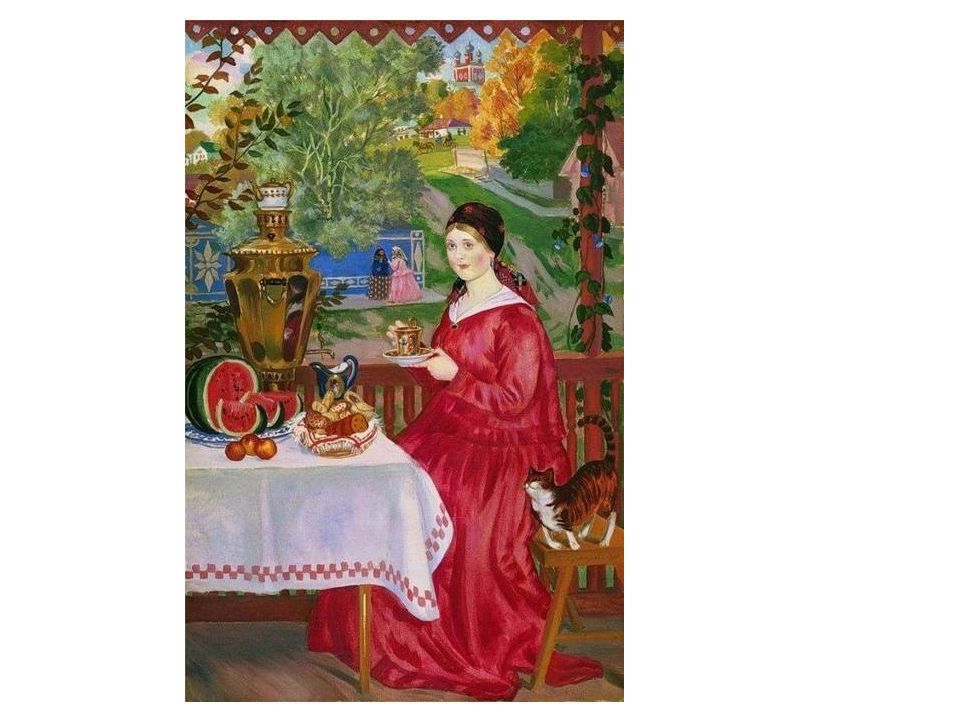 ...С каким уважением, можно сказать, нежностью относились в домах к самоварам! Это была последняя вещь, с которой расставалась нуждающаяся семья. Вокруг него по вечерам собирались домочадцы, пили душистый чай, неторопливо беседовали. Самовар кипит, уходить не велит — говорят в народе. На террасе, Б. Кустодиев