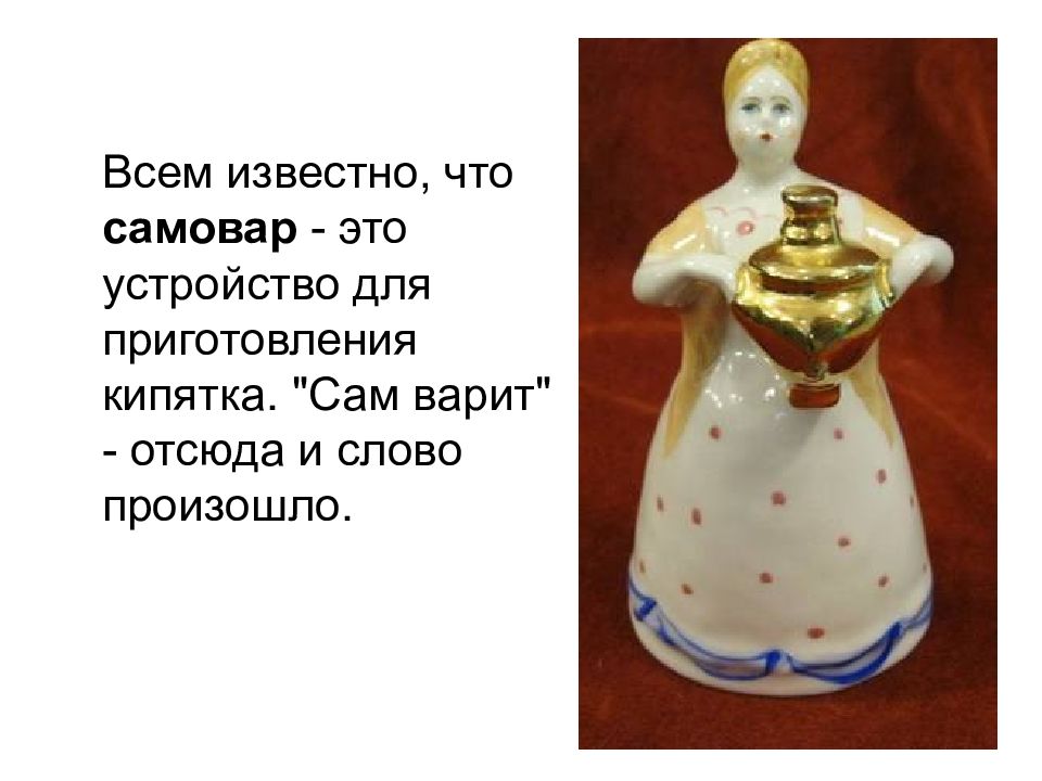 Всем известно, что самовар - это устройство для приготовления кипятка. "Сам варит" - отсюда и слово произошло.