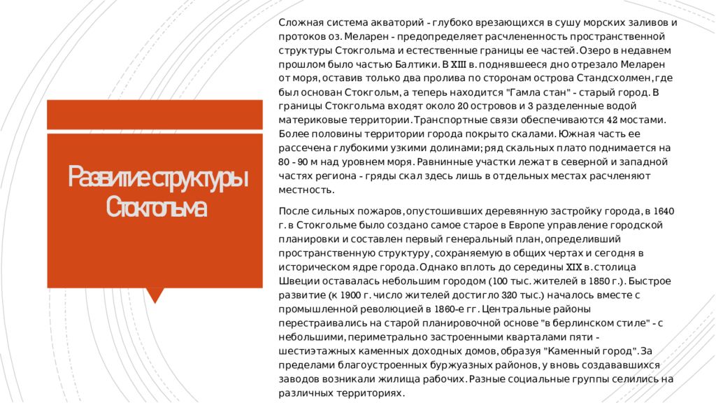 Слайд 4: Развитие структуры Стокгольма