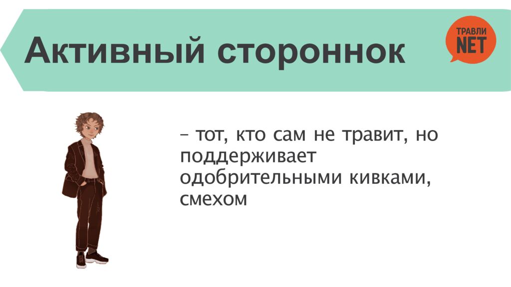 – тот, кто сам не травит, но поддерживает одобрительными кивками, смехом