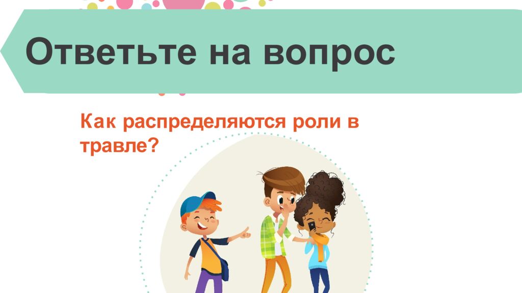 Как распределяются роли в травле? От в е т ь т е на вопрос