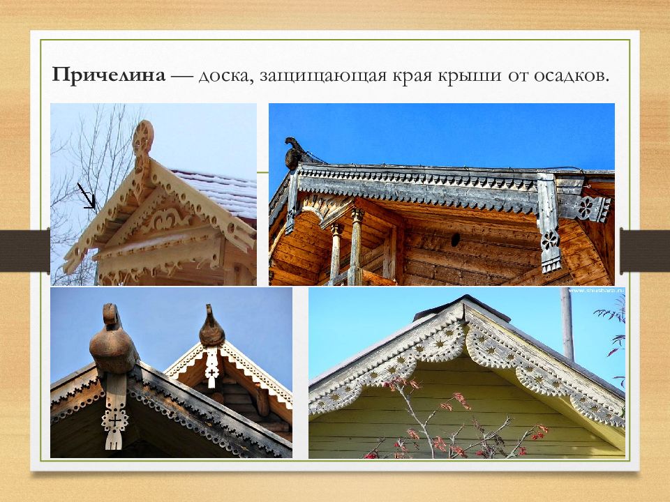 Долгое время на Руси все дома строили из дерева. Каждый мастер украшал дом по-своему. Причелина Наличник Венец (ряд брёвен)