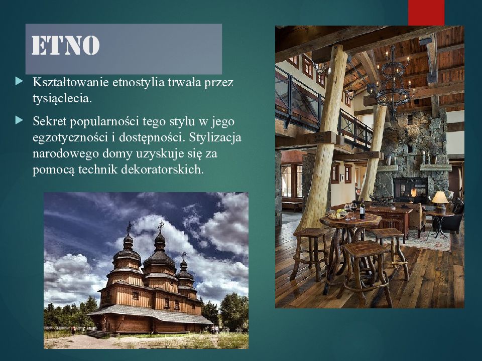 Kształtowanie etnostylia trwała przez tysiąclecia. Sekret popularności tego stylu w jego egzotyczności i dostępności. Stylizacja narodowego domy uzyskuje się za pomocą technik dekoratorskich.