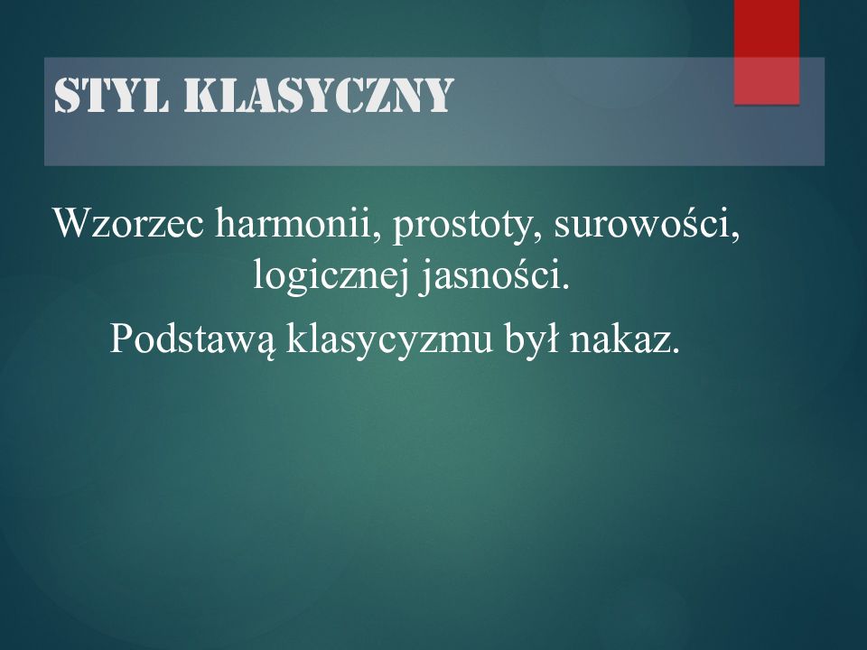 W zorzec harmonii, prostoty, surowości, logicznej jasności. Podstawą klasycyzmu był nakaz.