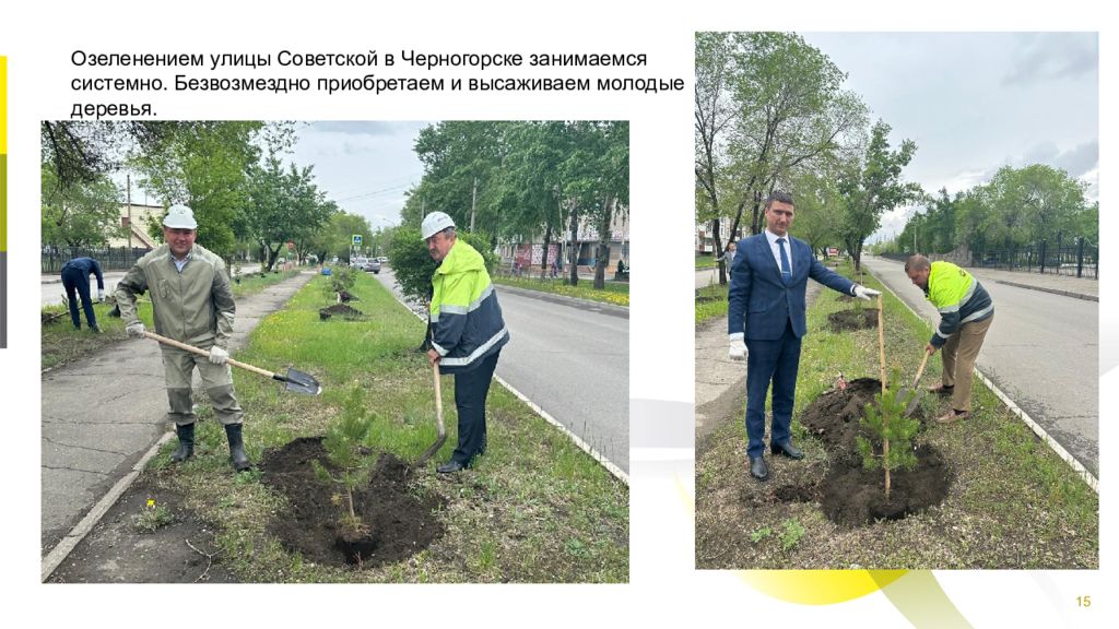 15 Озеленением улицы Советской в Черногорске занимаемся системно. Безвозмездно приобретаем и высаживаем молодые деревья.