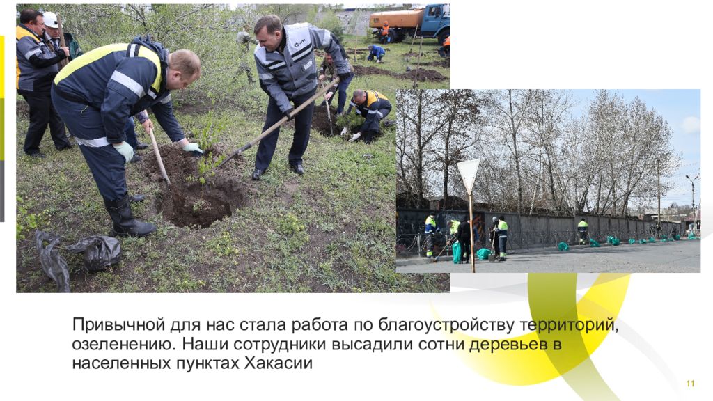 Привычной для нас стала работа по благоустройству территорий, озеленению. Наши сотрудники высадили сотни деревьев в населенных пунктах Хакасии 11