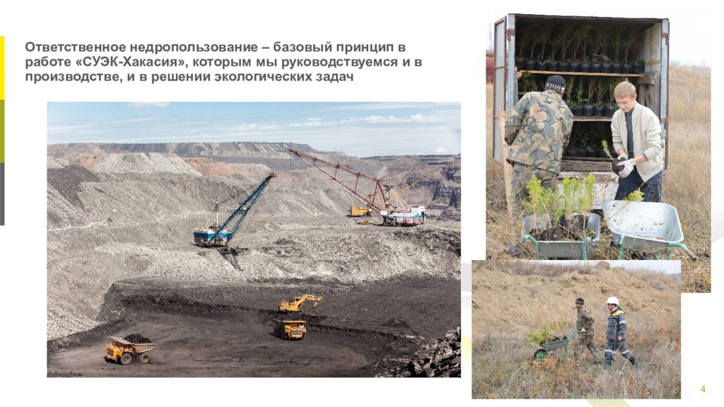 Слайд 4: Ответственное недропользование – базовый принцип в работе «СУЭК-Хакасия», которым мы руководствуемся и в производстве, и в решении экологических задач