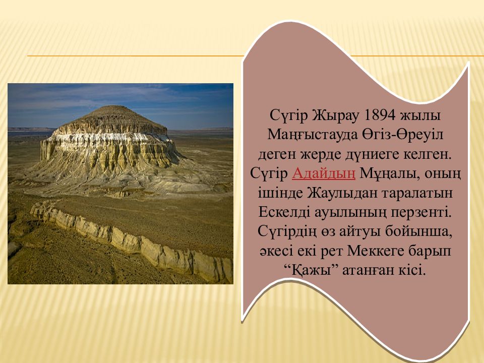 Сүгір Жырау 1894 жылы Маңғыстауда Өгіз-Өреуіл деген жерде дүниеге келген. Сүгір Адайдың Мұңалы, оның ішінде Жаулыдан таралатын Ескелді ауылының перзенті. Сүгірдің өз айтуы бойынша, әкесі екі рет Меккеге барып “Қажы” атанған кісі.