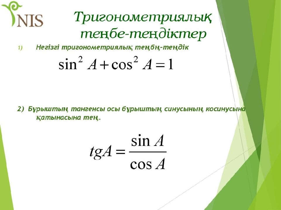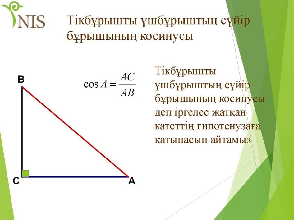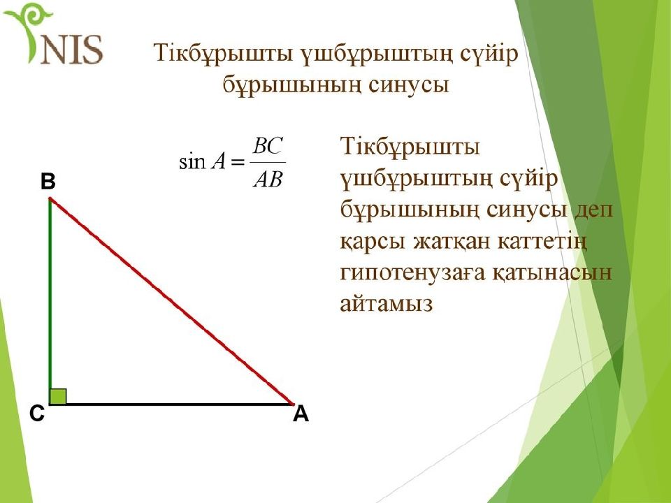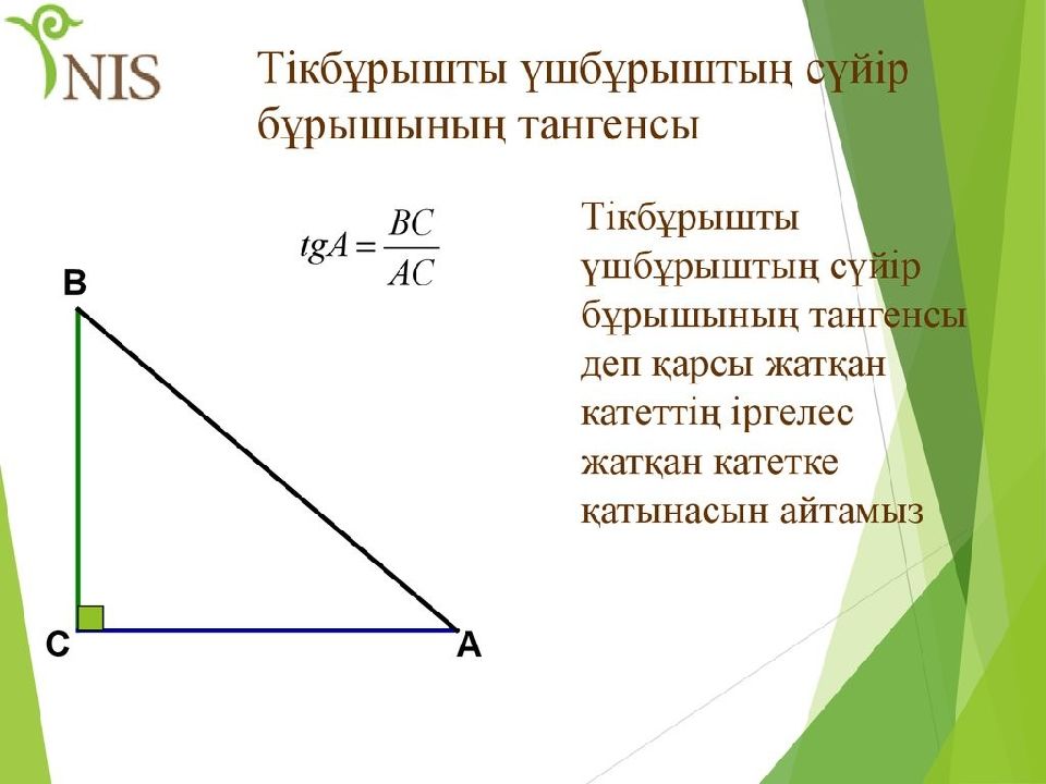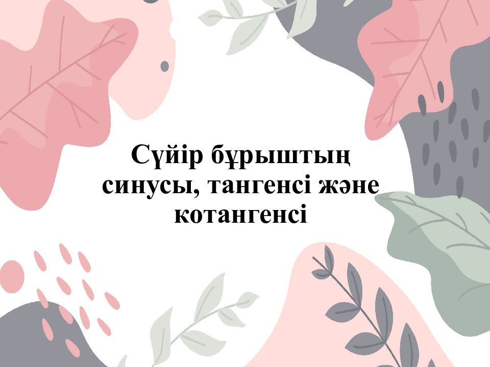 Первый слайд презентации: Сүйір бұрыштың синусы, тангенсі және котангенсі
