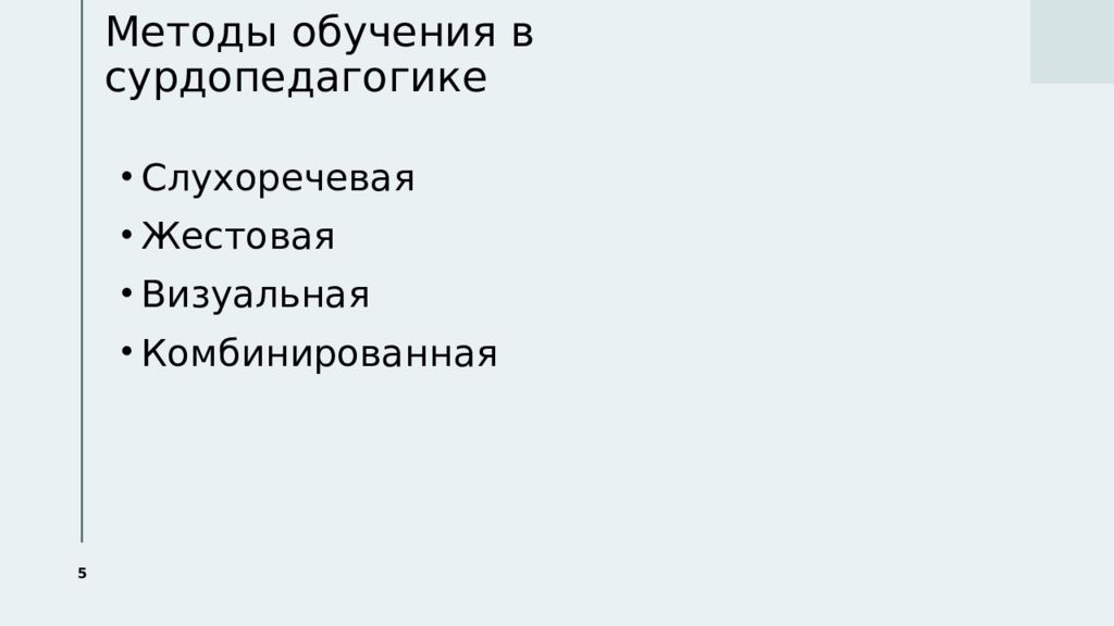 Слухоречевая Жестовая Визуальная Комбинированная 5