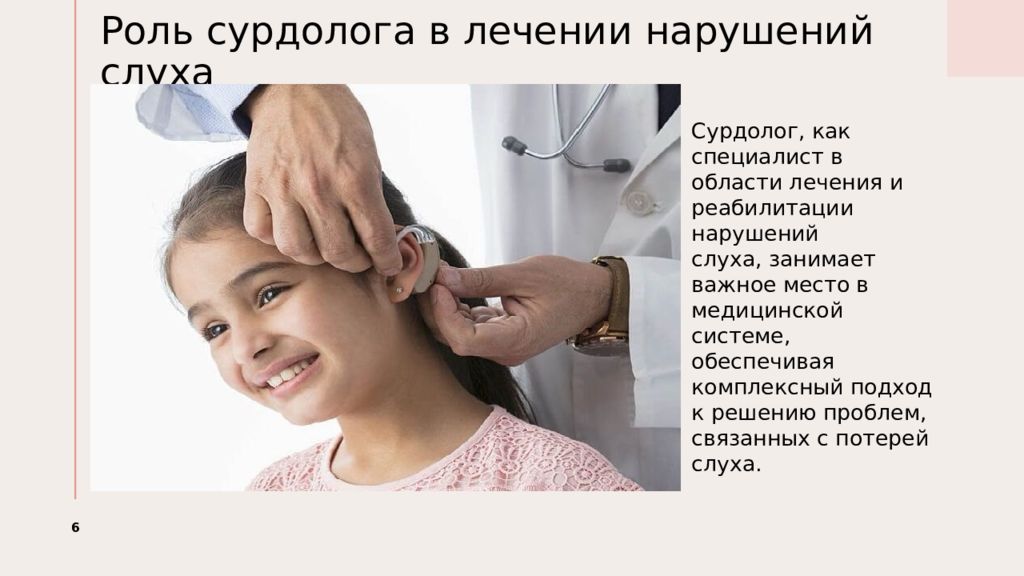 Слайд 6: Роль сурдолога в лечении нарушений слуха