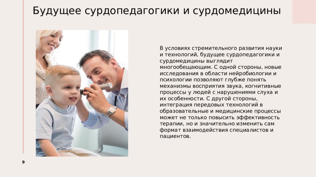 Слайд 9: Будущее сурдопедагогики и сурдомедицины