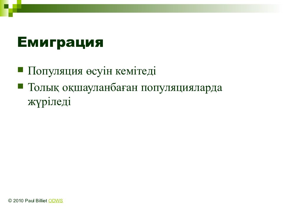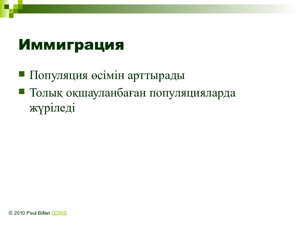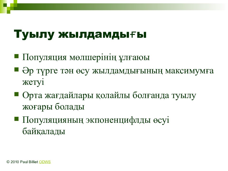 Популяция мөлшерінің ұлғаюы Әр түрге тән өсу жылдамдығының максимумға жетуі Орта жағдайлары қолайлы болғанда туылу жоғары болады Популяцияның экпоненцифлды өсуі байқалады © 2010 Paul Billiet ODWS
