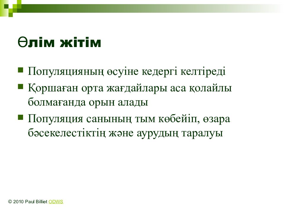 Популяцияның өсуіне кедергі келтіреді Қоршаған орта жағдайлары аса қолайлы болмағанда орын алады Популяция санының тым көбейіп, өзара бәсекелестіктің және аурудың таралуы © 2010 Paul Billiet ODWS