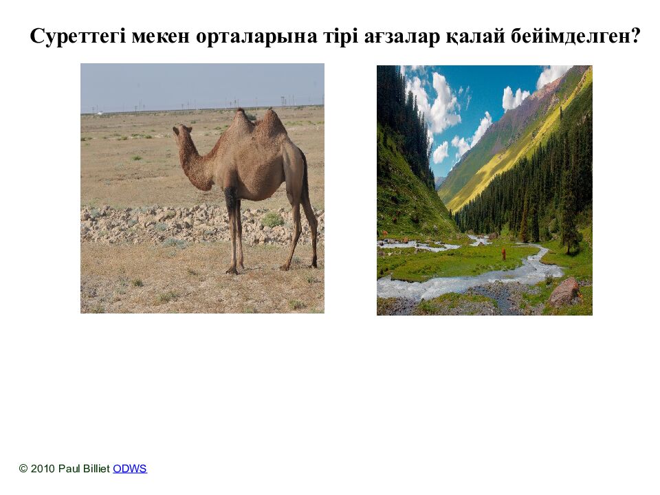 Первый слайд презентации: Суреттегі мекен орталарына тірі ағзалар қалай бейімделген?