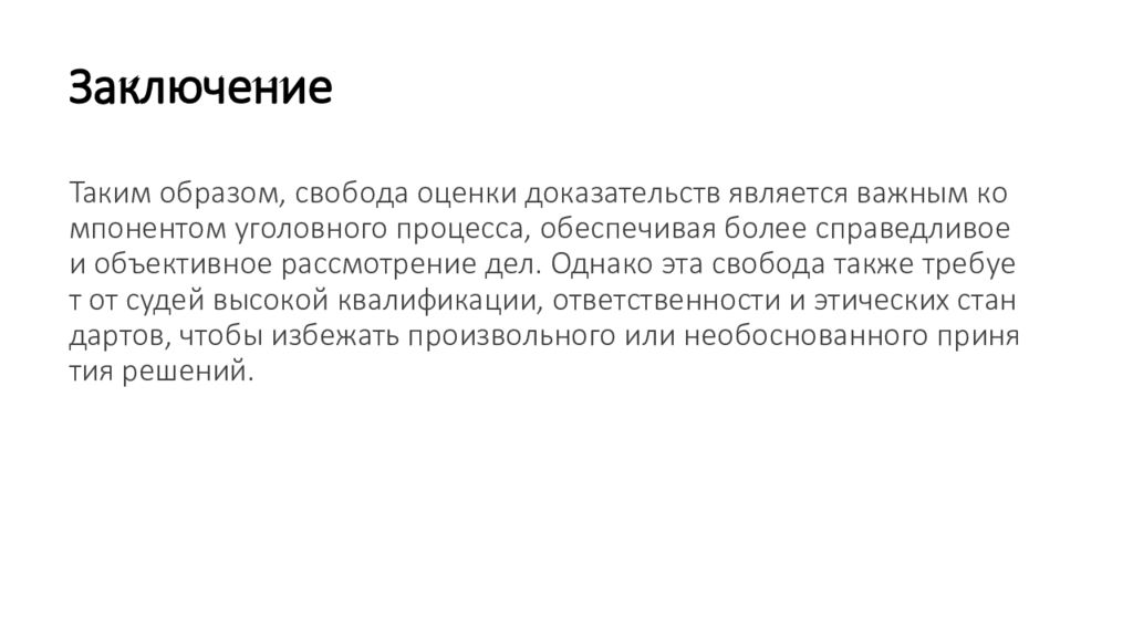 Последний слайд презентации: Свобода оценки доказательств: Заключение