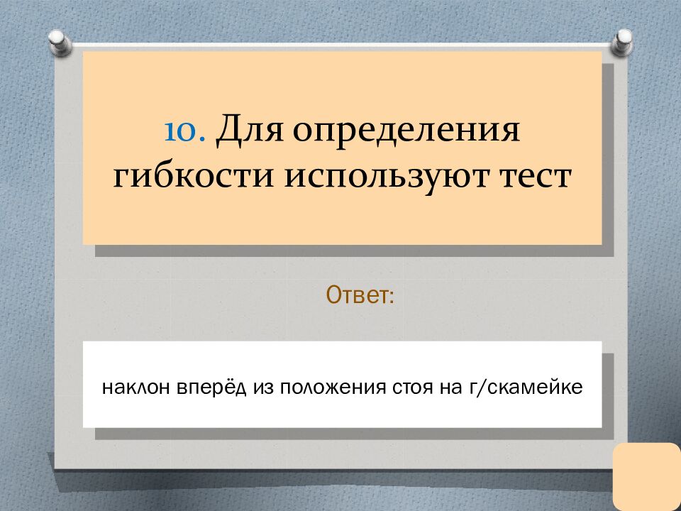 наклон вперёд из положения стоя на г/скамейке Ответ :