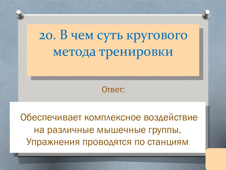 Слайд 20: 20. В чем суть кругового метода тренировки