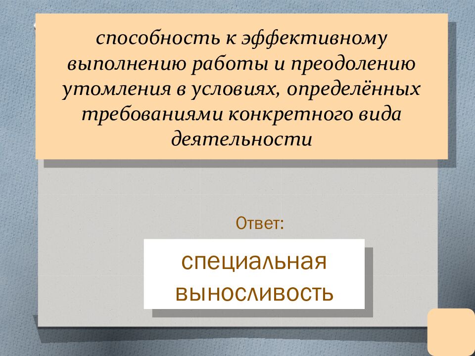 Слайд 5: способность к эффективному выполнению работы и преодолению утомления в условиях, определённых требованиями конкретного вида деятельности