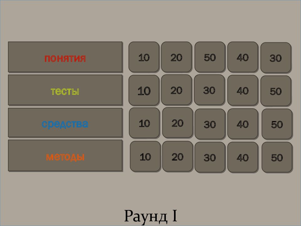 10 20 5 0 40 3 0 10 20 30 40 50 10 20 30 40 50 понятия тесты средства методы 10 30 40 50 20