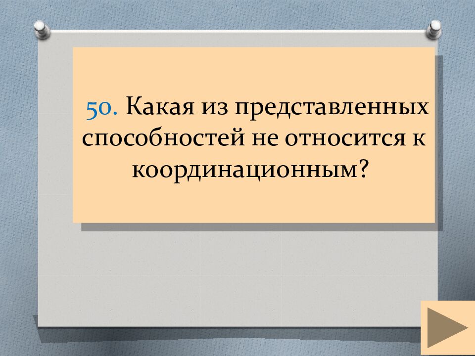 Слайд 7: 50. Какая из представленных способностей не относится к координационным?