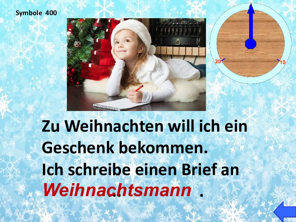 Zu Weihnachten will ich ein Geschenk bekommen. Ich schreibe einen Brief an .... Symbole 4 00 Weihnachtsmann
