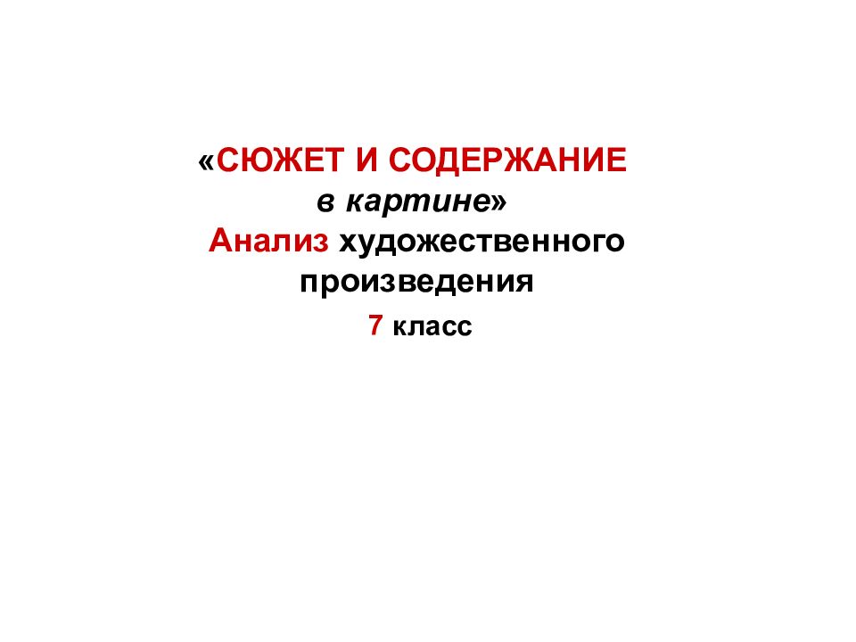 « СЮЖЕТ И СОДЕРЖАНИЕ в картине » Анализ художественного произведения 7 класс
