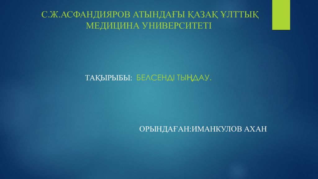 С.Ж.Асфандияров атындағы Қазақ Ұлттық Медицина Университеті Тақырыбы : белсенді тыңдау. Орындаған : Иманкулов Ахан