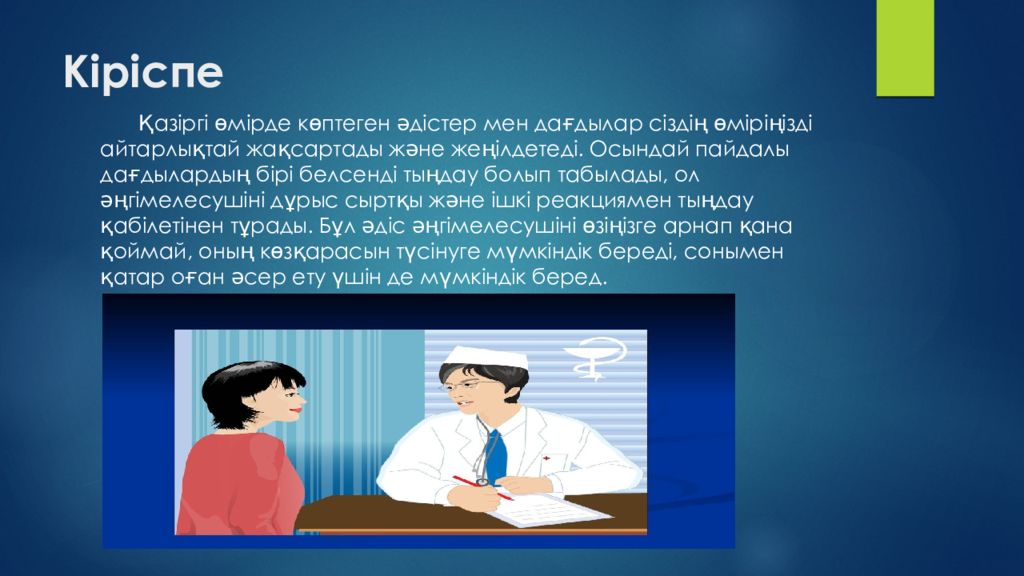 Қазіргі өмірде көптеген әдістер мен дағдылар сіздің өміріңізді айтарлықтай жақсартады және жеңілдетеді. Осындай пайдалы дағдылардың бірі белсенді тыңдау болып табылады, ол әңгімелесушіні дұрыс сыртқы және ішкі реакциямен тыңдау қабілетінен тұрады. Бұл әдіс әңгімелесушіні өзіңізге арнап қана қоймай, оның көзқарасын түсінуге мүмкіндік береді, сонымен қатар оған әсер ету үшін де мүмкіндік беред.