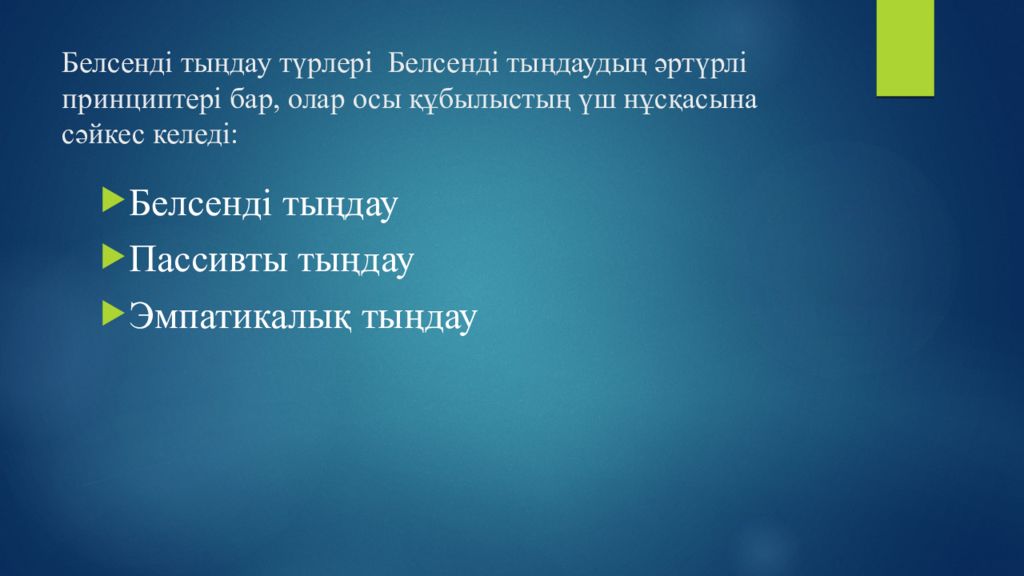 Белсенді тыңдау Пассивты тыңдау Эмпатикалық тыңдау