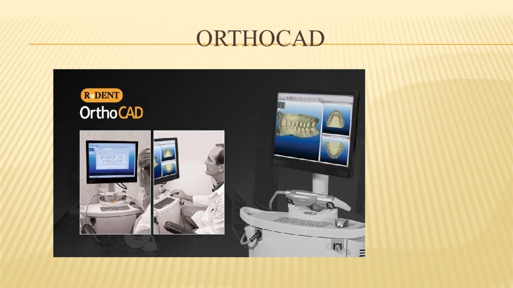 OrthoCAD жүйесі — гипстен жасалған модельдердің орнына тістердің 3 D- модельдерін құру және сақтауға арналған сандық технологияны пайдаланатын ортодонтиялық деректерді басқару бағдарламалық жасақтамасы. CAD/CAM (Computer-Aided Design/Computer-Aided Manufacturing) — жобалау және өндіріске компьютерлік қолдау көрсетудің жалпы технологиясы, ол ортопедияда протездер жасау үшін қолданылады. Осы технологияларды біріктіріп пайдалану жоғары дәлдіктегі әрі берік ортопедиялық құрылымдарды жылдам әрі ең аз қателікпен жасауға мүмкіндік береді, бұл емдеу уақытын қысқартып, сапасын арттырады.