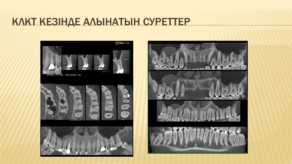 Слайд 14: КЛКТ кезінде алынатын суреттер