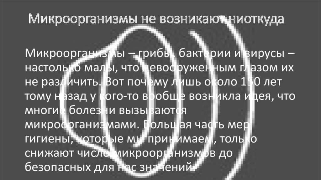 Микроорганизмы – грибы, бактерии и вирусы – настолько малы, что невооруженным глазом их не различить. Вот почему лишь около 150 лет тому назад у кого-то вообще возникла идея, что многие болезни вызываются микроорганизмами. Большая часть мер гигиены, которые мы принимаем, только снижают число микроорганизмов до безопасных для нас значений.
