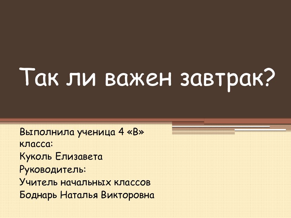 Первый слайд презентации: Так ли важен завтрак?