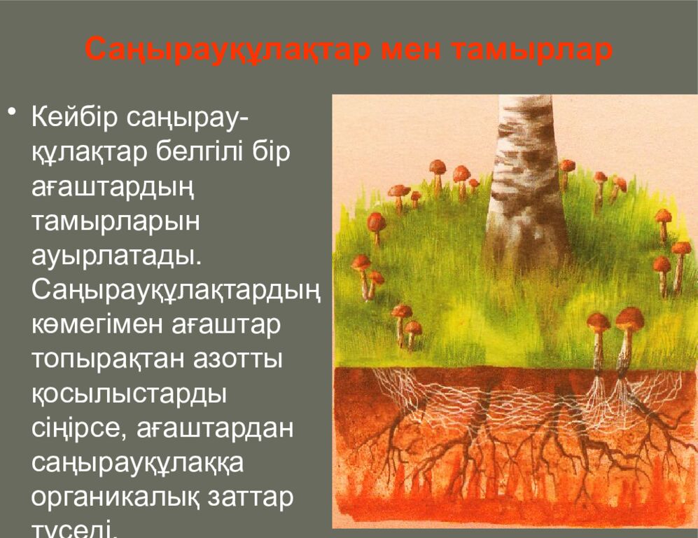 Слайд 20: Саңырауқұлақтар мен тамырлар