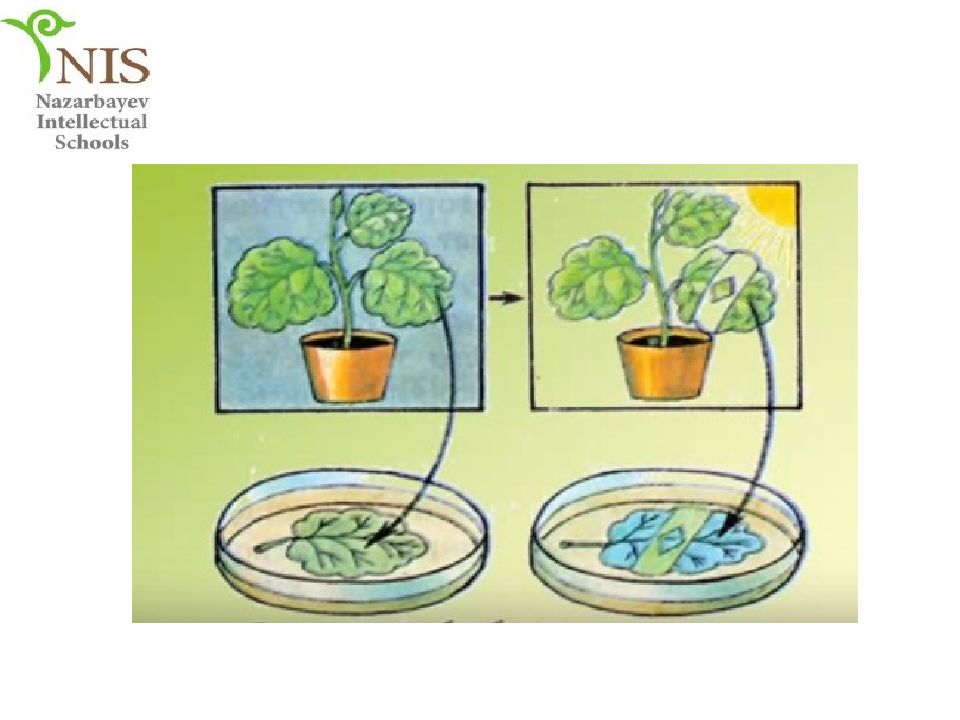 Тарау: 5.3А Тірі және өлі табиғаттағы үдерістер Оқу мақсаты: 5.4.2.6 өсімдіктерде пигменттердің болуын зерттейді Алматы қаласы химия-биология бағытындағы Назарбаев Зияткерлік мектебі Бағалау критерийлері : өсімдіктерде пигменттердің болуын зерттей алса және фотосинтездің жүруі үшін қажетті жағдайларын білсе оқу мақсатына жетеді Тақырыбы : Фотосинтез пигменттері