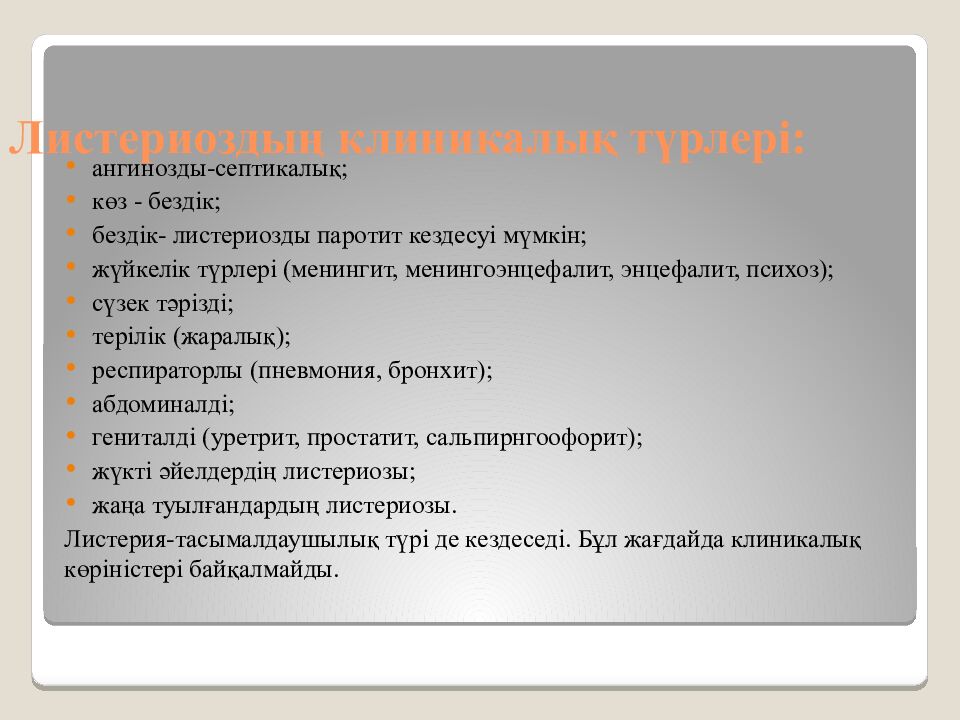 Первый слайд презентации: Тақырыбы : « Листериоз »